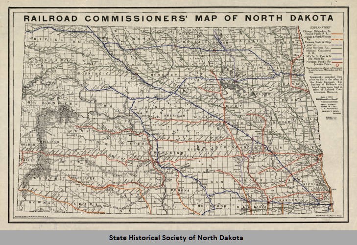 1913 North Dakota Railroad Map: