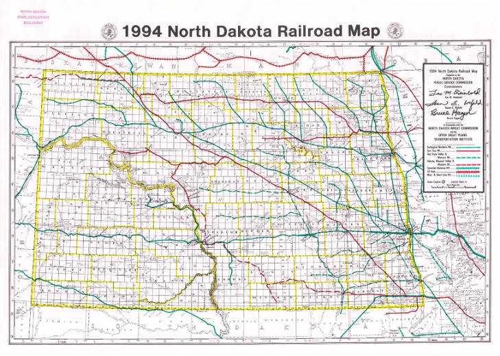 1994 North Dakota Railroad Map: